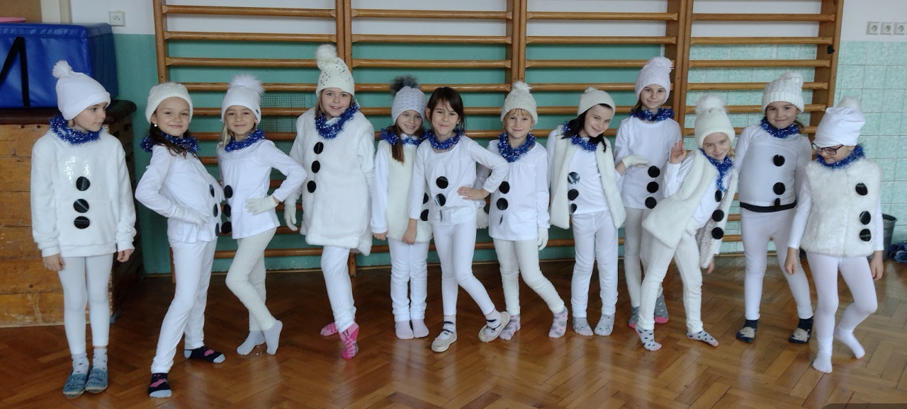 Děvčata si zde vyzkoušela různé pohybové hry, improvizaci na hudbu, základy některých tanců a secvičily jsme 2 pohybové skladby „Sněhuláci“ a „Motýlci“.